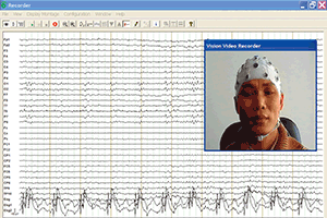 The acquisition parameters as well as the impedance check are automatically stored and can be accessed from within the analysis software at any time. A complete evoked potential analysis can be performed in real time directly in BrainVision Recorder and the segmented/averaged data can be stored together with the raw data. The BrainVision Recorder video module allows the capture of images of the experimental subject which are synchronized with the incoming EEG data. This can be reviewed in the analysis software frame by frame while leafing through the acquired data.